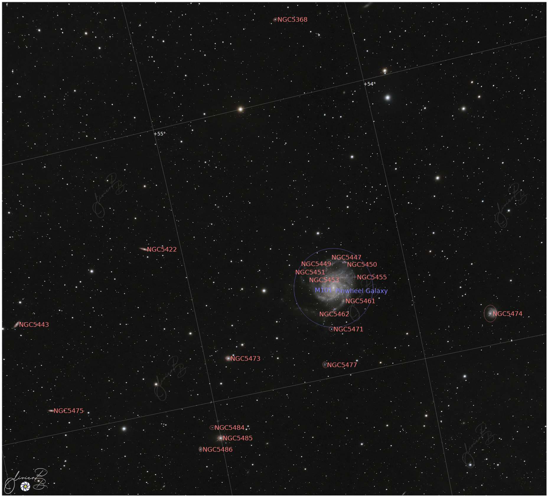 Messier 101 ou aussi galaxie du moulinet , est une spirale de type Sc, située dans la constellation de la Grande Ourse.