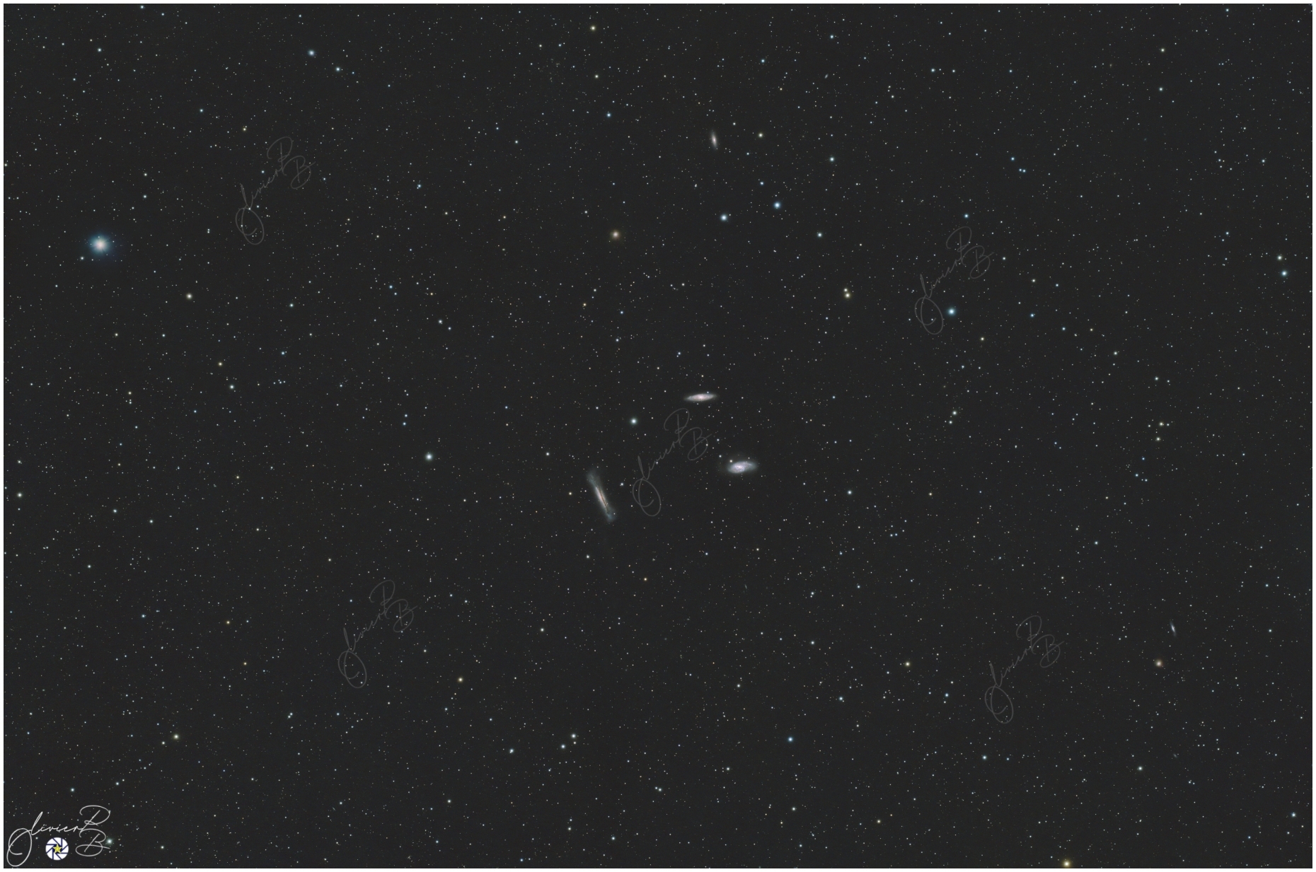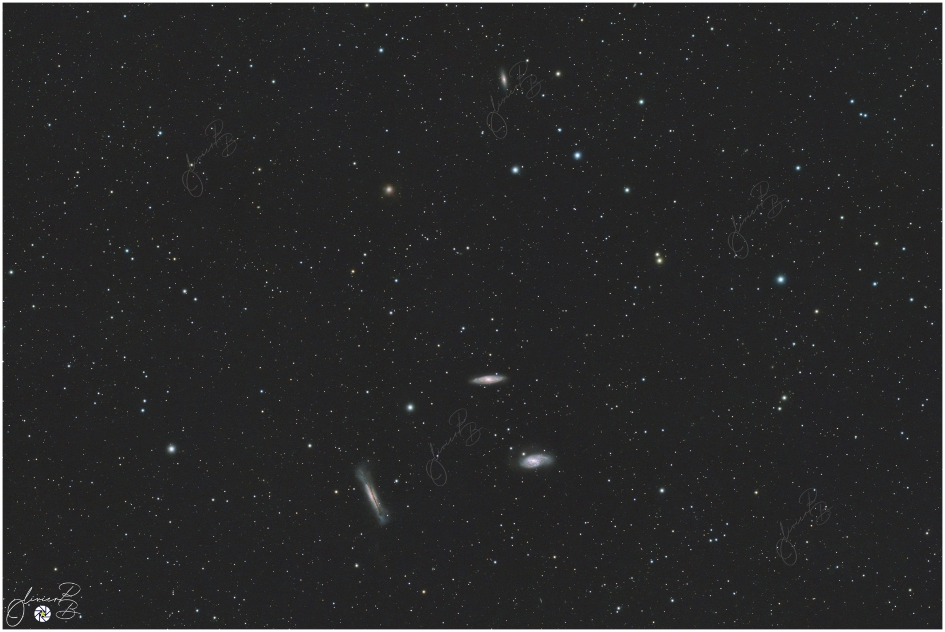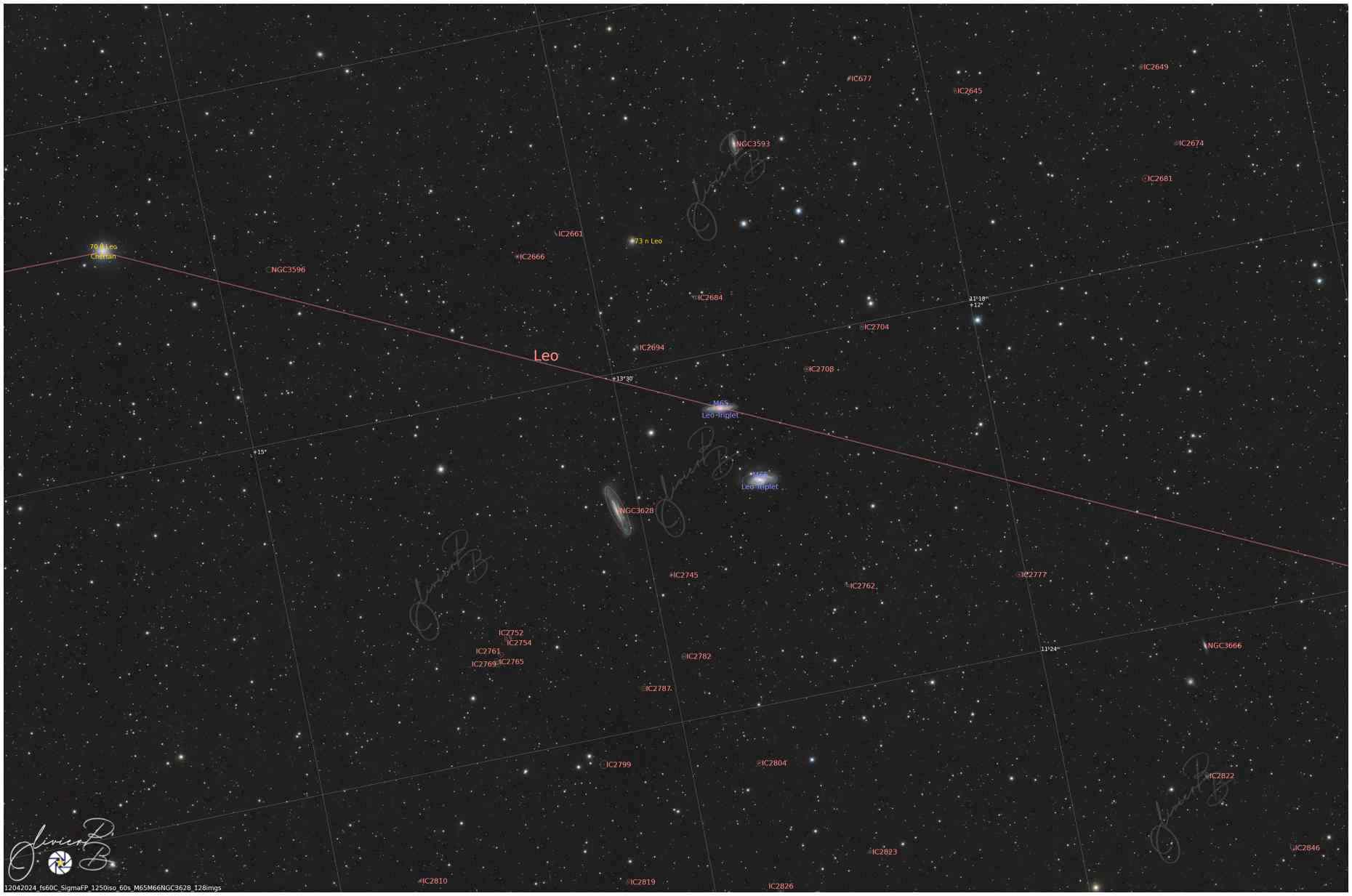 Ce trio de galaxie se situe dans la constellation du Lion , il est composé principalement de 3 galaxies , Messier 65 et 66 et de NGC 3628; elles se situent à environ 35 millions d 'année de lumière..
