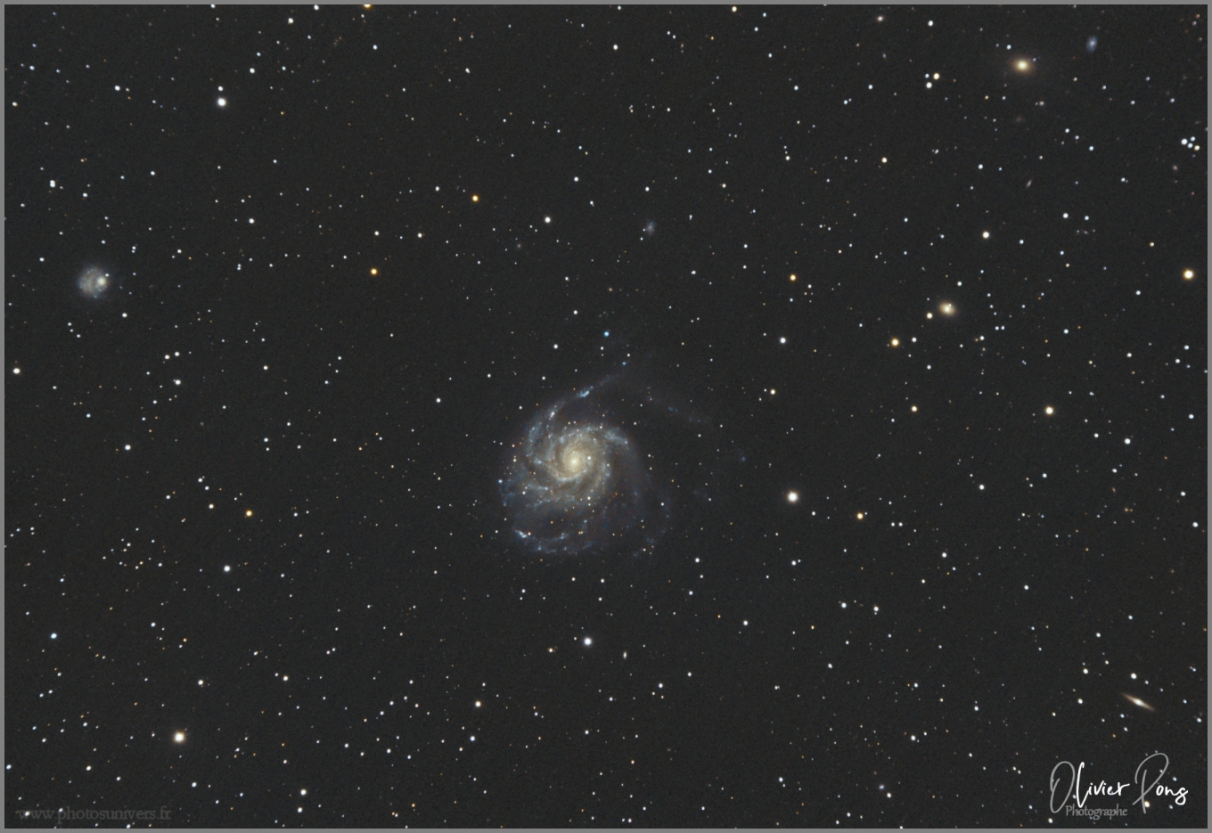 ensuite une trés jolie galaxie spirale Messier 101 (21 millions d'AL) ou galaxie du moulinet.. et enfin Messier 106 (23.7 millions d'AL) accompagnée d'autres petites galaxies.