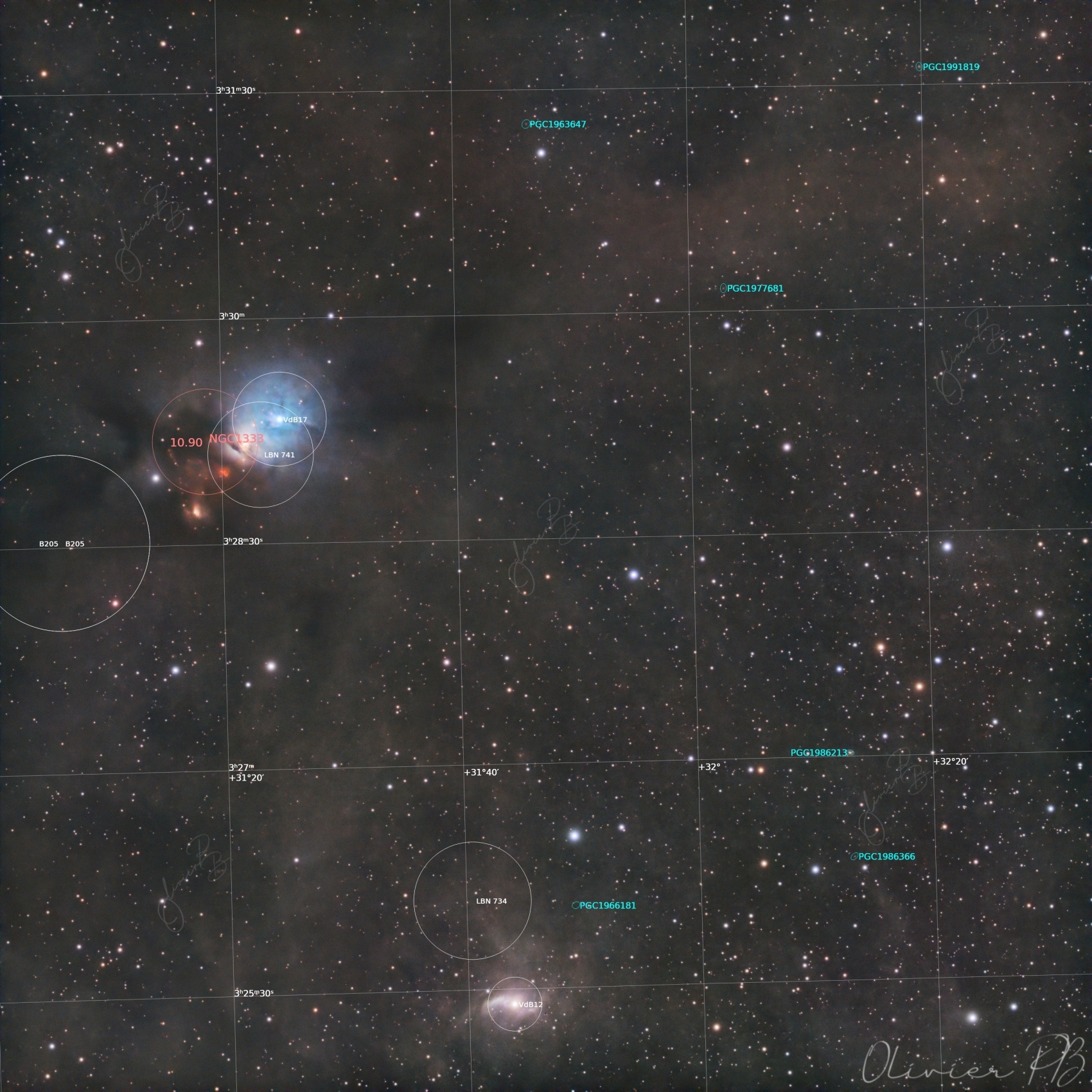 NGC 1333NGC 1333 est une nébuleuse par réflexion située dans la constellation de Persée. Elle appartient au nuage moléculaire de Persée. NGC 1333 a été découverte par l'astronome allemand Eduard Schönfeld en 1855.