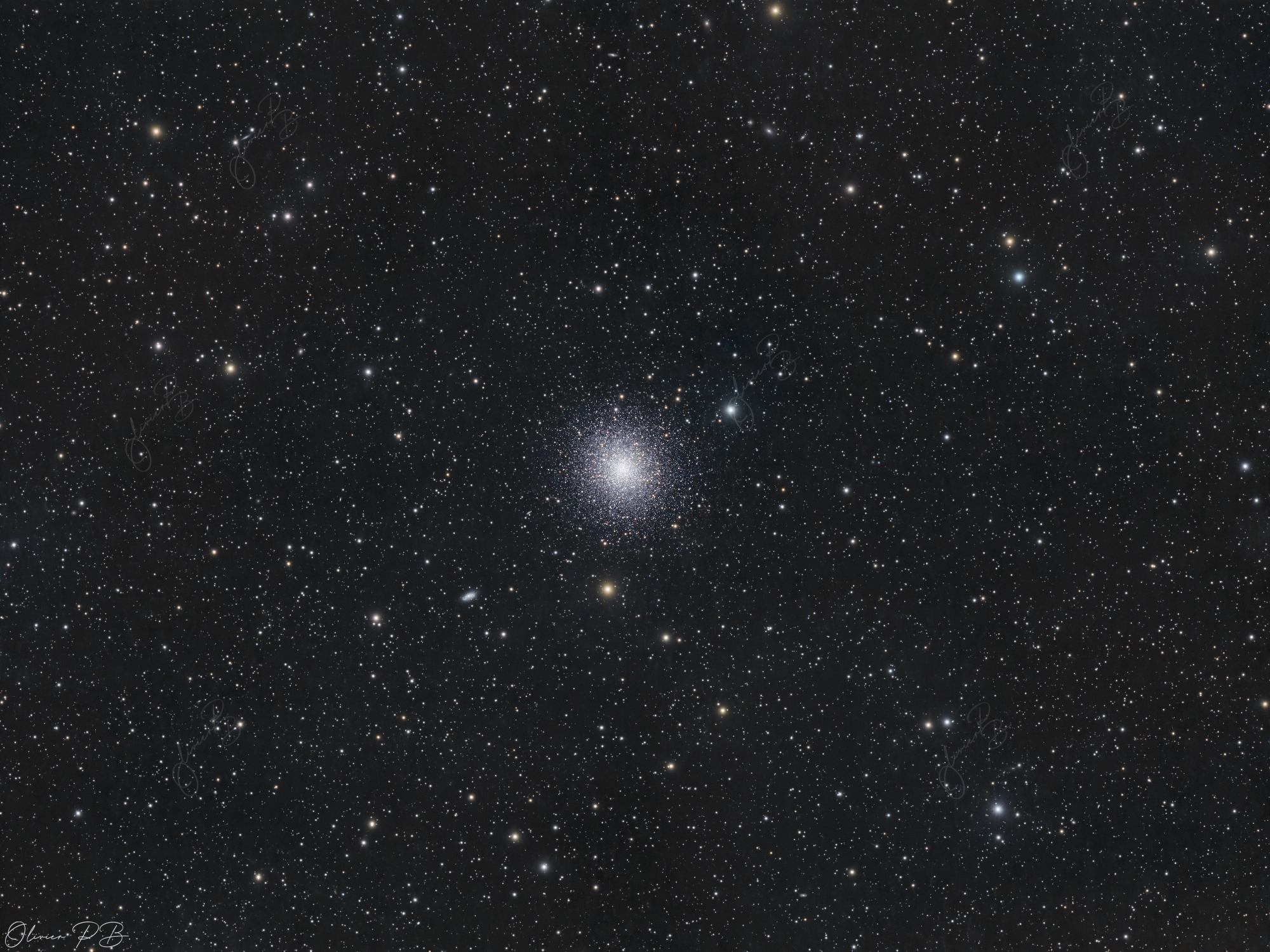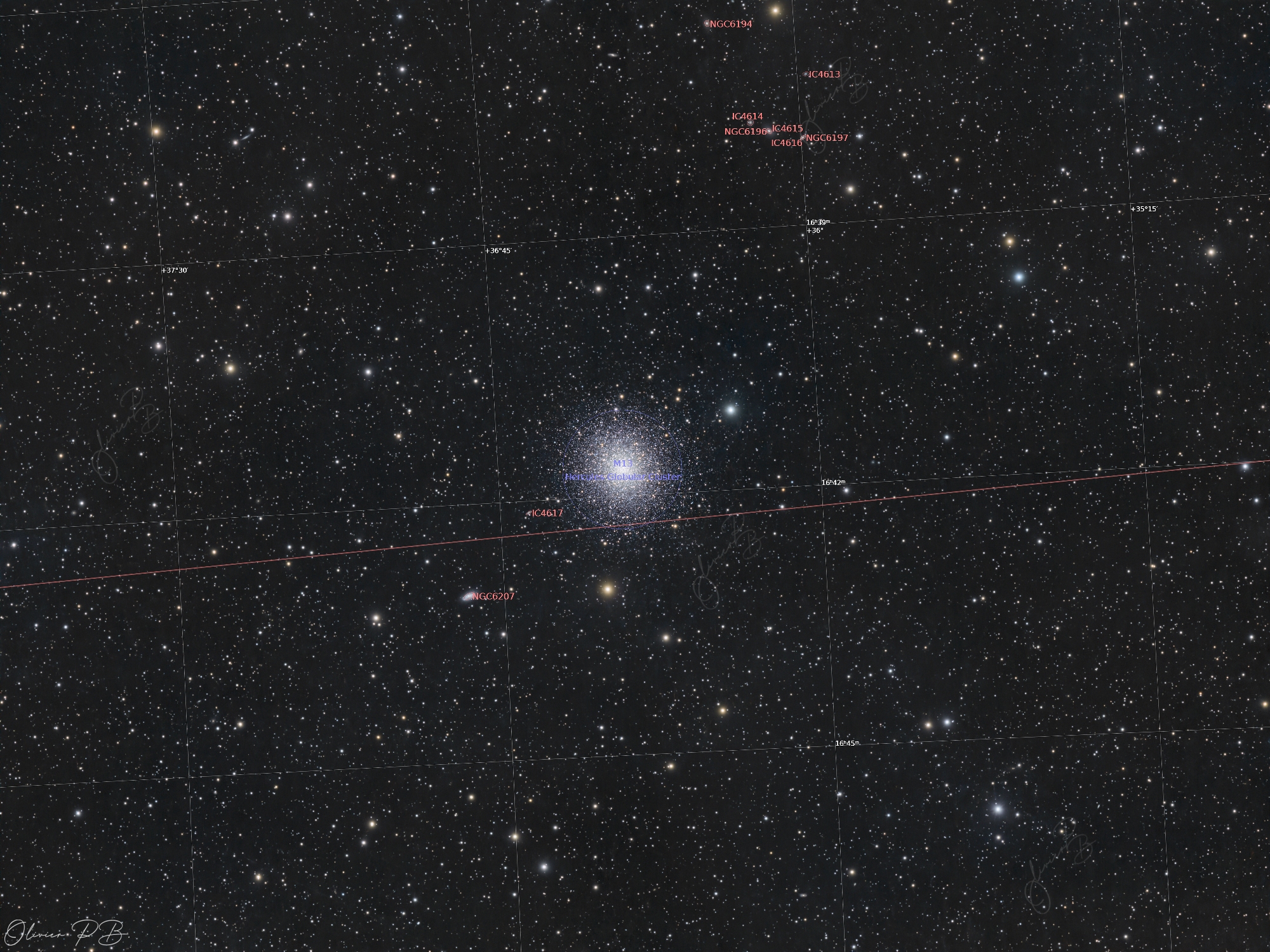L'amas globulaire messier 13L' amas globulaire Messier 13 est le plus célèbre amas visible depuis l'hémisphère nord ; il est situé dans la constellation d'Hercule. les amas globulaires sont des ensembles ,composés de milliers de vieilles étoiles, situées en périphérie de notre galaxie .Ce sont les plus vieux objets de notre voie lactée..