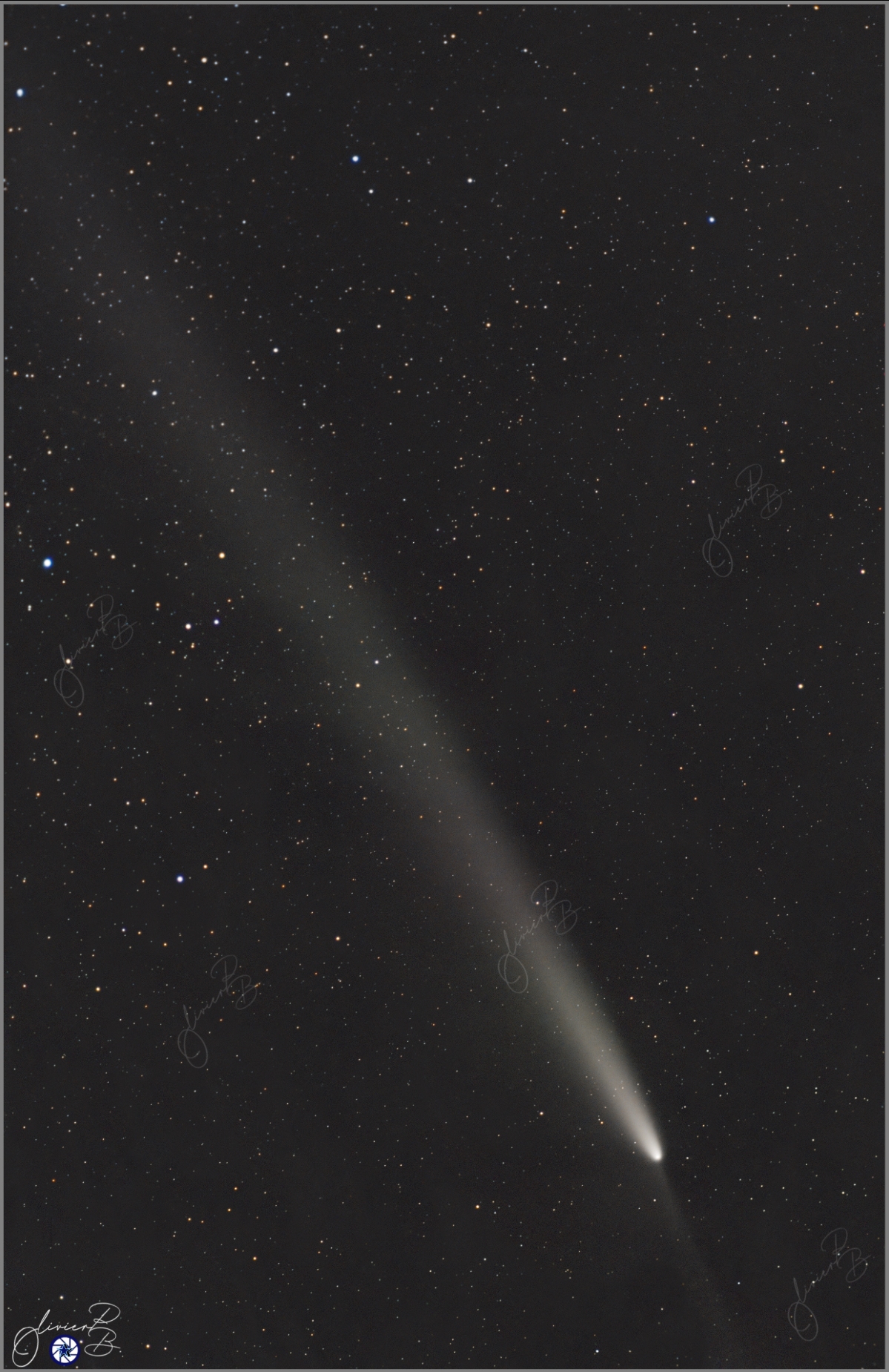 comète Tsuchinshan-Atlasdeuxième et troisième observation de cette comète , le 18 et 20 octobre 2024 , elle a faibli mais elle est trés facilement visible aux jumelles la première photo a été faite , avec un objectif argentique olympus Zuiko à 135mm et un boitier Fuji le tout sur un simple trépied.la deuxième photo a été réalisée grâce à une lunette 60mm sur monture donc avec suivi sidéral motorisé , c'est le résultat d'un cumul de 10 poses de 30s