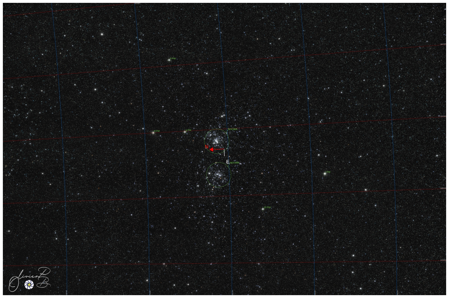 | Le double amas de Persée annoté.