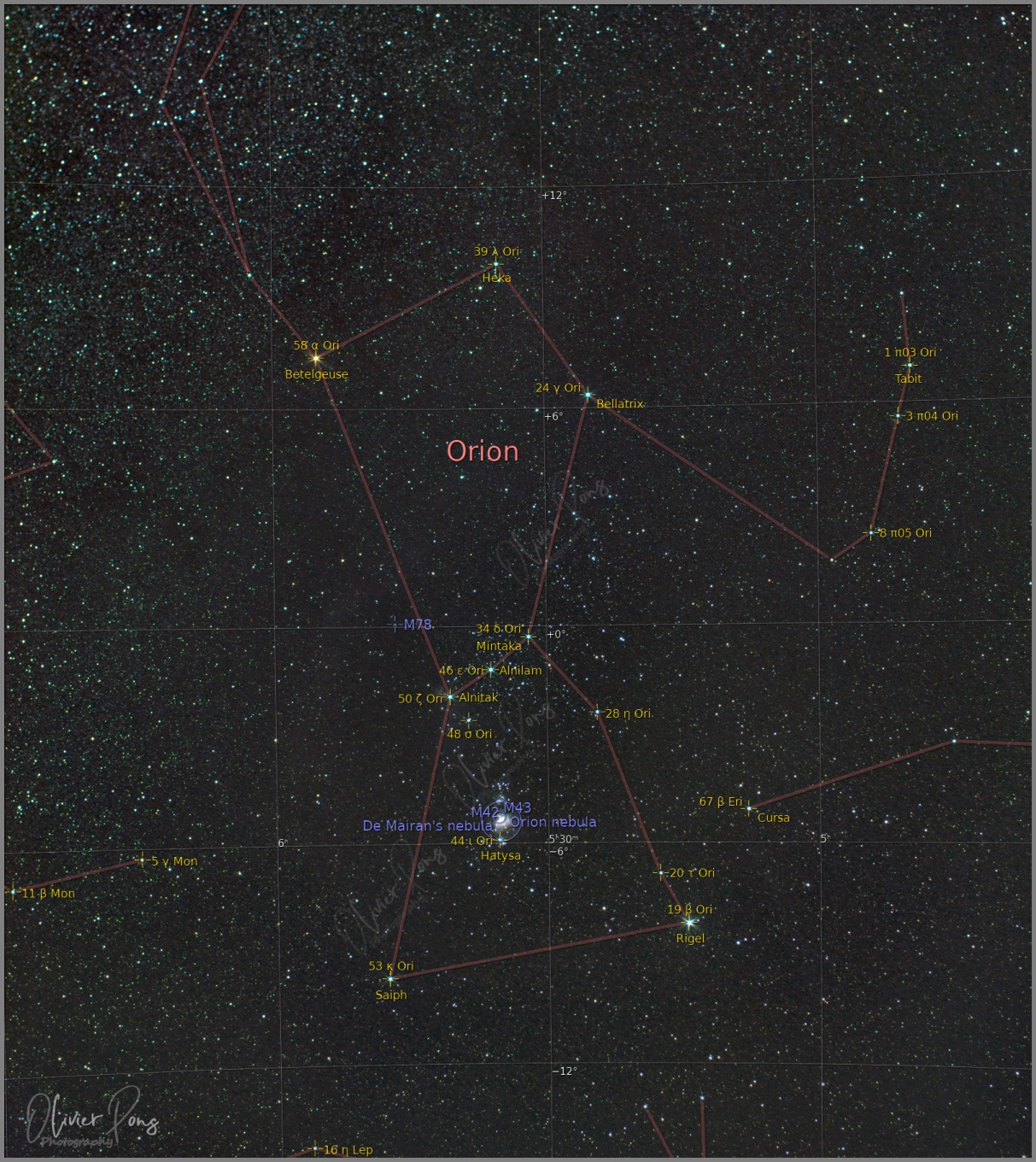 La constellation d'Orion est une grande et magnifique constellation , elle est visible en hiver et sert d'alignement pour repérer d'autres constellations.
